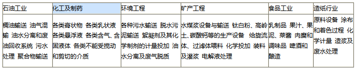 化学行业:各种悬浮液、油脂、各种胶体浆、各种粘合剂